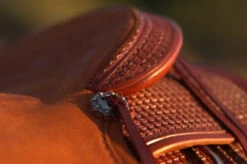 The Dodge Ranch Sorter with hardseat has a close contact skirt for clearer cues. Features in skirt C rigging, aluminum stirrups, and 6 sets of long strings that are handy for tying gear. Practical work saddle is great looking too! The Dodge Ranch Sorter is fully hand tooled in waffle pattern with camo border and finished with antiqued slotted conchos with strings. Circle Y Dodge Ranch Sorter includes the matching flank cinch set and latigo tie straps. Versatile saddle for sorting, roping, and all around ranch riding.
