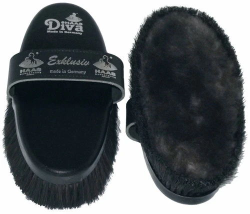 Haas Diva Exclusive Brush is a horse grooming brush you will love to use on your horse for a beautiful shine. Even plusher and more luxurious than the original Diva brush, the HAAS Diva Exclusive Brush is as good as it gets. If you’re looking for a finishing brush that will give the shiniest possible polish to your horse’s coat, you won’t go wrong with the Diva Exclusive. And what a great gift! Luxurious lambskin panel bordered by soft horsehair. The Haas Diva Exclusive measures 200 mm x 85 mm. Made in Germany.