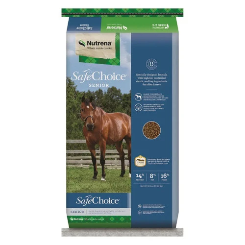 SafeChoice Senior gives your old friend what she needs to make every year golden. It’s specifically designed for older horses over the age of fifteen, especially those suffering from unexpected age-related weight loss, exhibiting sluggishness, experiencing issues with muscle or coat quality, or having difficulty chewing their hay.