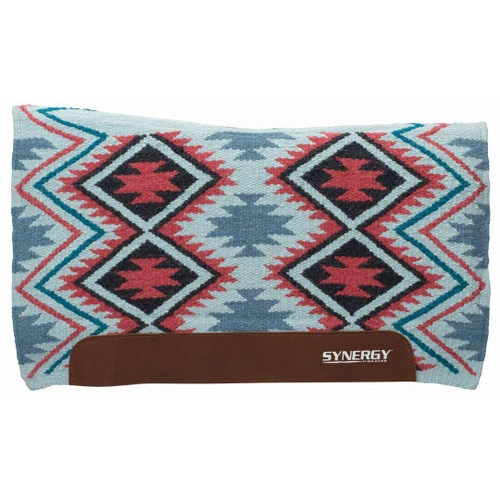 The Synergy Flex Contour Performance Saddle Pad in vibrant new Firestorm pattern offers advanced technology plus tried and true natural materials. The wool woven top gives the look of a classic Navajo blanket while the merino wool fleece lining and EVA Sport Foam inside deliver shock absorption and increased airflow.